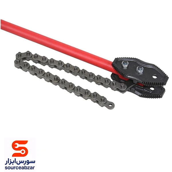 این آچار لوله گیر برای گرفتن و باز و بسته کردن انواع لوله و اتصالات فلزی، فولادی، آهنی، گالوانیزه و … استفاده می شود. جنس این آچار لوله گیر ساخته شده از فولاد آلیاژی می باشد. آچار زنجیری از یک دسته مجهز به فک آج دار و زنجیر مقاومی که در موقع پیچیده شدن به دور لوله آن را محکم می گیرد و از چرخش لوله جلوگیری می کند. آچار زنجیری بیشتر برای لوله های قطور (4 اینچ) به بالا مورد استفاده قرار می گیرد و زنجیر فولادی آن از مقاومت خوبی برخوردار است. طراحی و طویل بودن این وسیله ، ایجاد قدرت اهرمی زیادی را باعث می شود. آچار زنجیرى یا Chain Wrench براى سایزهاى بزرگ بسیار مفید و کارآمد است. با استفاده از این آچار می توان انوع لوله ها و تجهیزات سایز بالا باز و بسته کرد. دندانه های روی فک آن به خوبی قطعه مورد نظر را نگه می دارد. آچار زنجیری لوله گیر در سایزهای 4″ -6″-8″-10″-12″(چهار اینچ- شش اینچ – هشت اینچ – ده اینچ و دوازده اینچ) عرضه میشود.